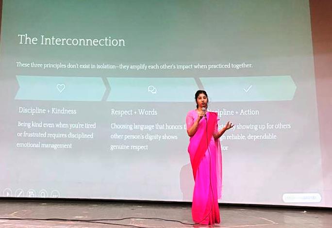 Ms. Sareen conducted an insightful discussion on preparing effective lesson plans using appropriate pedagogies such as experiential learning, collaborative learning, inquiry-based learning, storytelling, peer learning, and interactive classroom discussions. She emphasised the importance of creating a joyful and learner-friendly environment by incorporating warm- up activities, group tasks, brainstorming sessions, and reflection-based learning. Teachers were guided to make each lesson interactive and student-centred so that learners remain actively involved and confident in expressing their thoughts.
