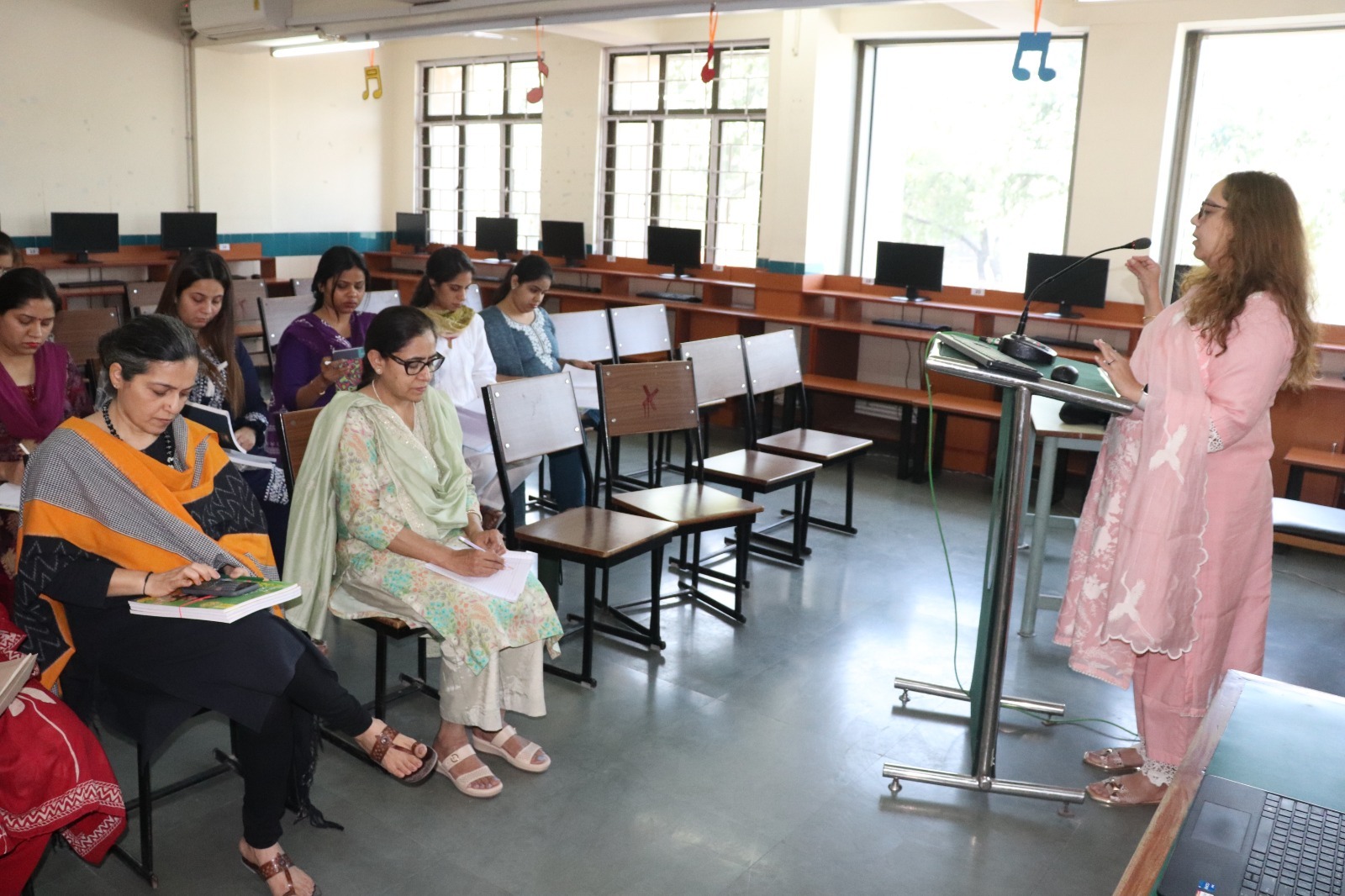 Ms. Sareen conducted an insightful discussion on preparing effective lesson plans using appropriate pedagogies such as experiential learning, collaborative learning, inquiry-based learning, storytelling, peer learning, and interactive classroom discussions. She emphasised the importance of creating a joyful and learner-friendly environment by incorporating warm- up activities, group tasks, brainstorming sessions, and reflection-based learning. Teachers were guided to make each lesson interactive and student-centred so that learners remain actively involved and confident in expressing their thoughts.