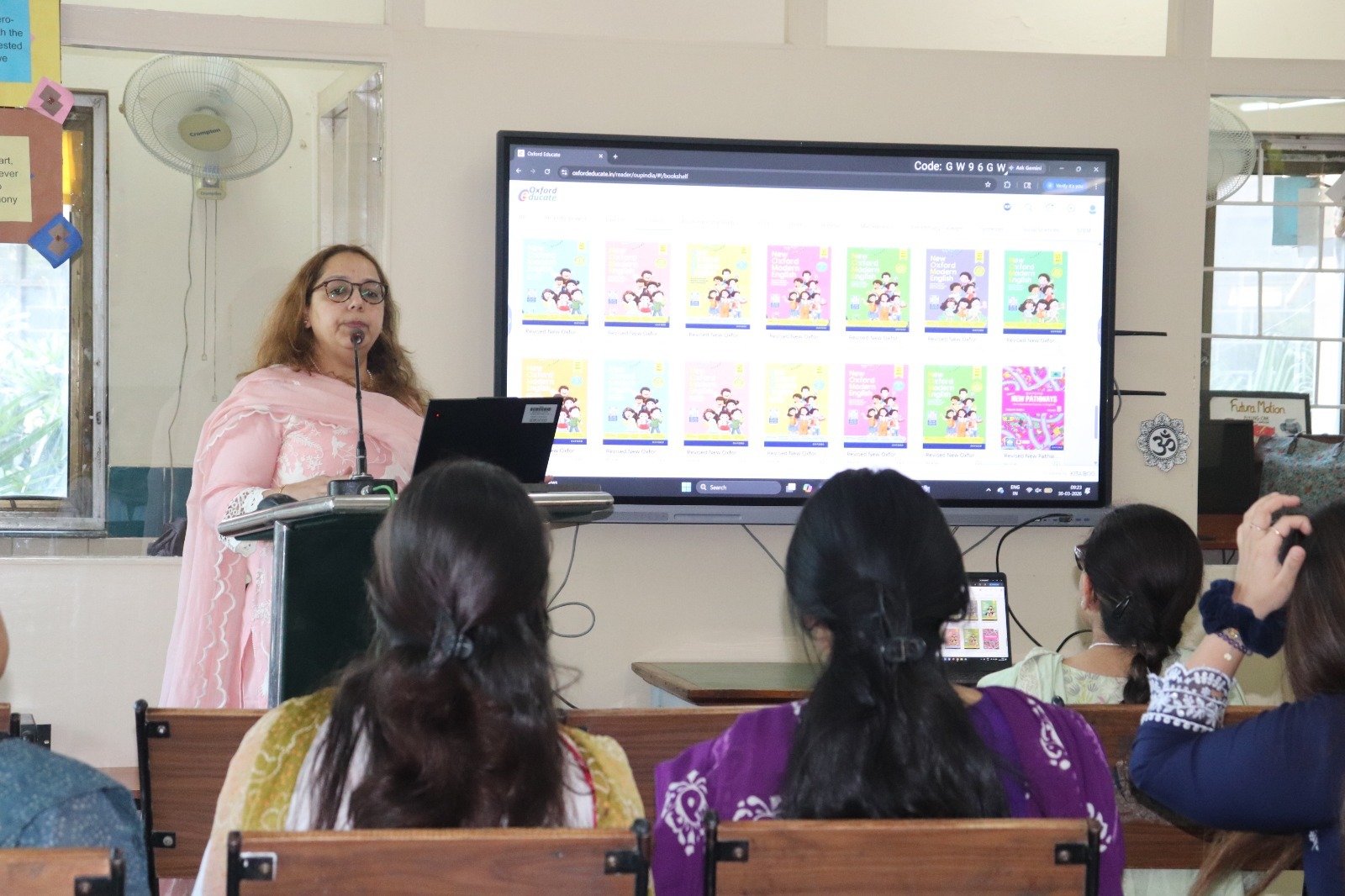The workshop further included a detailed explanation on framing class tests and question papers using Oxford resources. Teachers were guided on designing balanced assessments by including competency-based questions, comprehension tasks, grammar application exercise vocabulary enrichment activities, and writing skill-based questions. The process of selecting and generating assessment material from online resources was also explained.